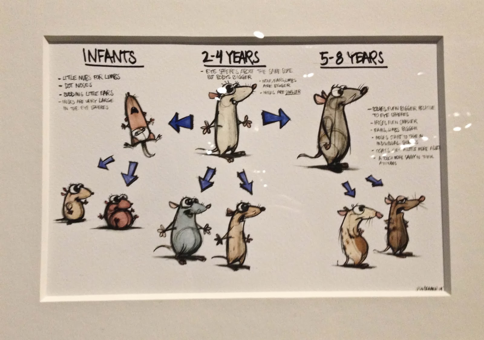 Ensuite, n’y allez pas avec des enfants. J’étais avec deux garçons un de 8 ans et l’autre de 13 et ils ont vraiment été déçus. Le musée des Arts “Ludiques” ne l’est absolument pas pour cette expo. Peu d’explications, pas de musique, peu d’images des films définitifs… En résumé, si on ne s’intéresse pas à la technique de dessin, il est difficile de s’intéresser à l’expo. Il manque, selon moi, un vrai cheminement dans l’expo, des explications pour comprendre pourquoi tel ou tel personnage a été créé, modifié, abandonné, etc. L’expo n’est, finalement, qu’un enchaînement de dessins et de sculptures peu compréhensible pour la plupart des visiteurs qui ressortent donc avec un sentiment de “trop cher pour trop peu”. En résumé, l’expo manque de vie et l’excellente qualité des travaux du studio Pixar n’est pas vraiment mis à l’honneur.