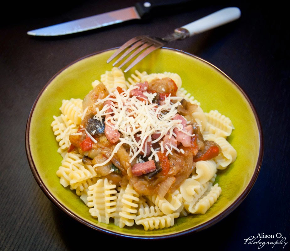 Pâtes aubergine/courgette/tomates