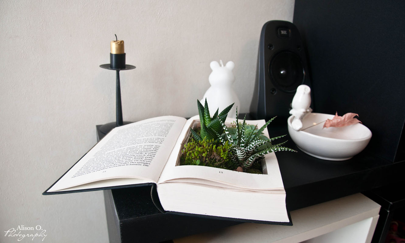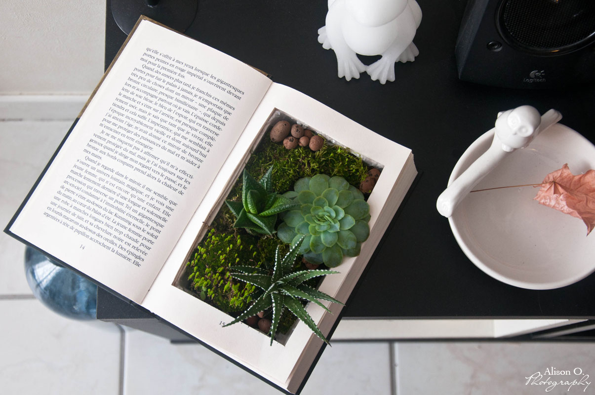 Il ne vous restera plus qu’à trouver l’endroit idéal pour placer votre DIY et arroser vos succulentes une fois de temps en temps en évitant de tremper les pages autour ^^