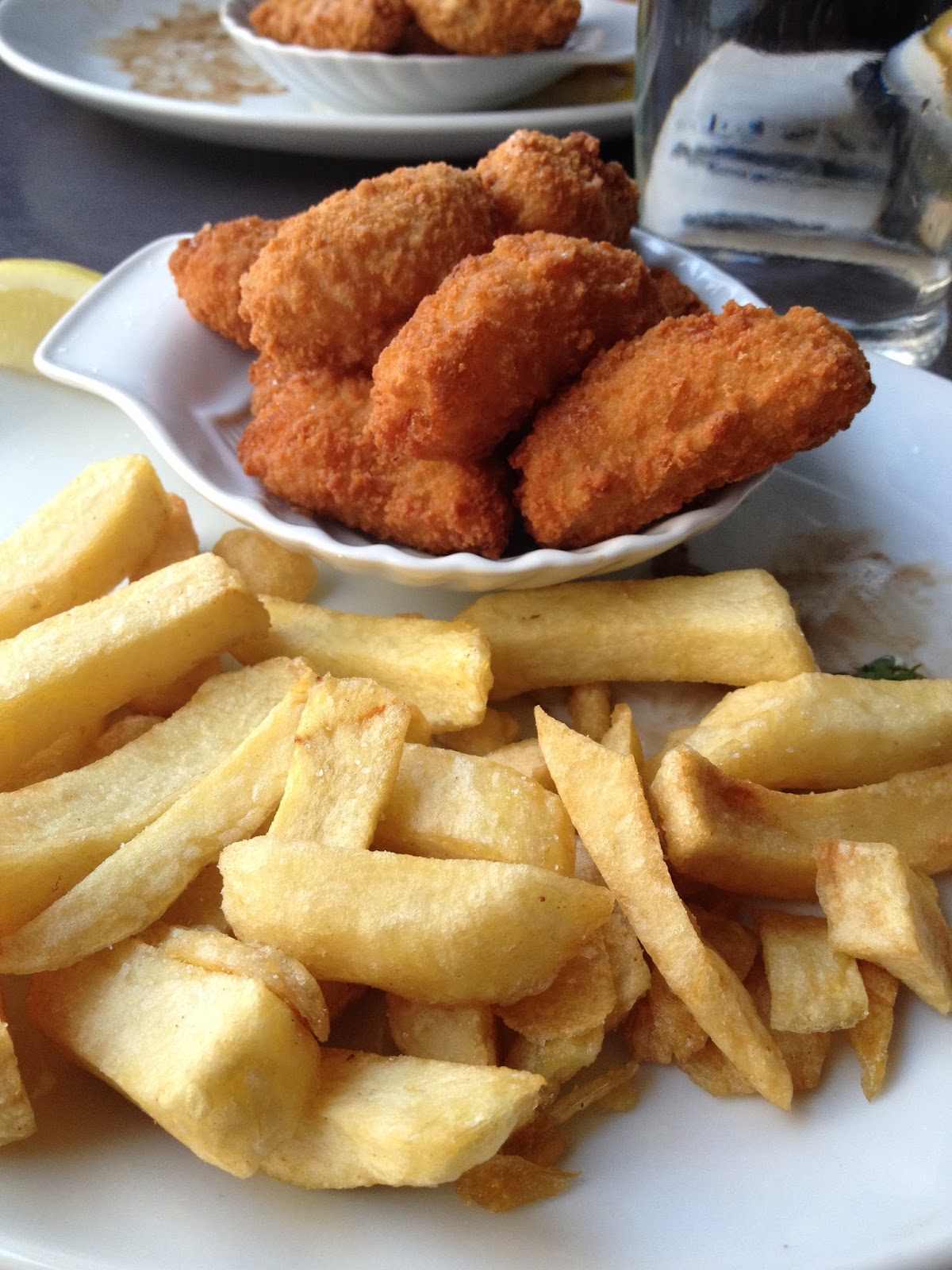 Et le soir on se fera un Fish&Chips, mais du coup j’ai pris Scampi&chips pour changer 😛 Des queues de langoustines *-* Miam miam ! C’était au Georges Street Fish&chips restaurant.