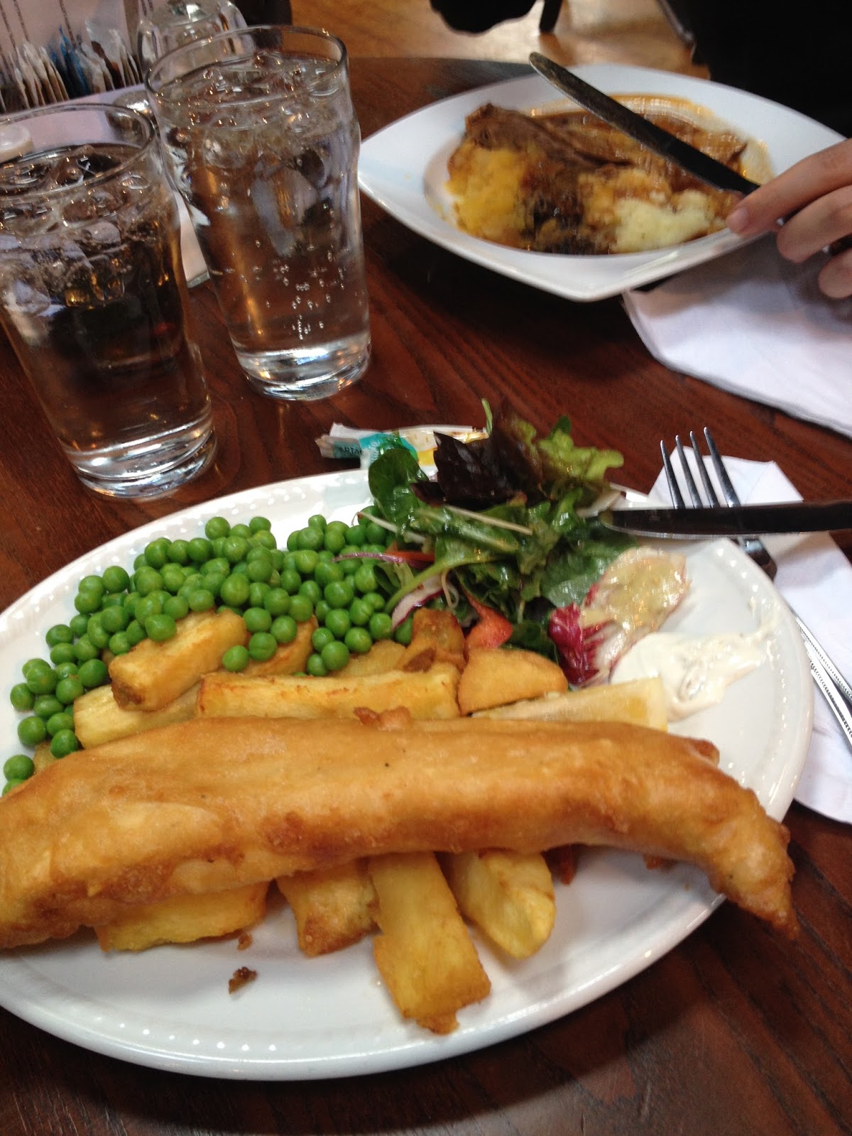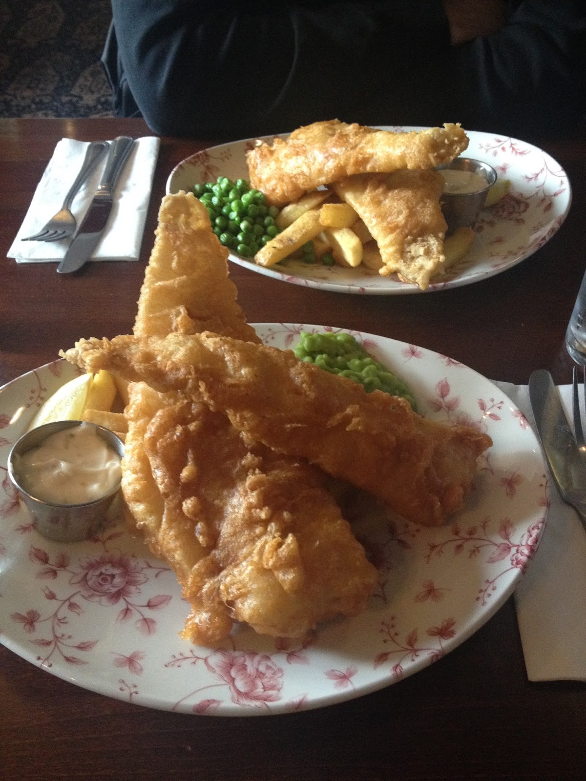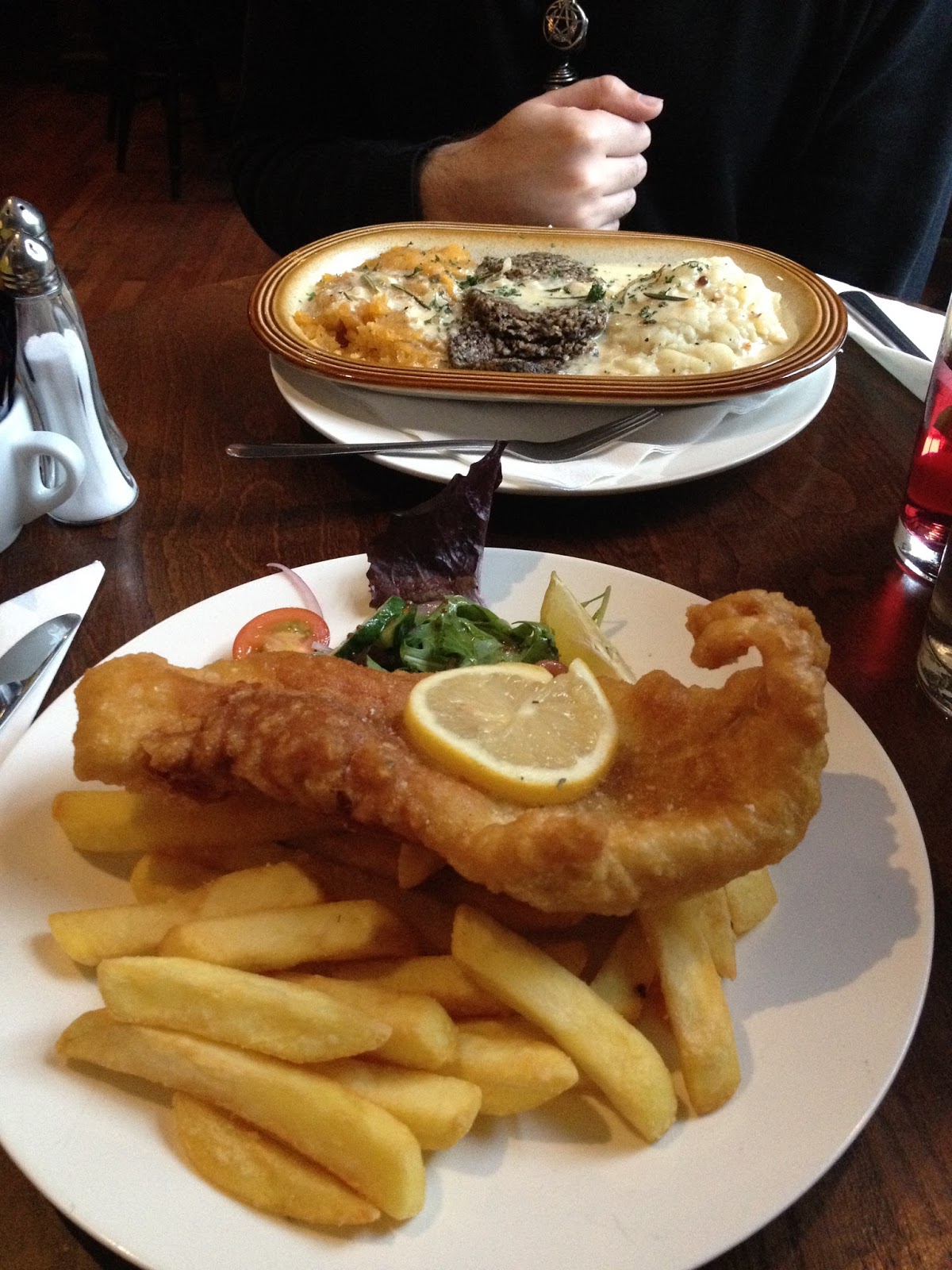 Premier soir, on commence par un exceptionnel Fish&Chips dans le Pub Haymarket d’Edimbourg :