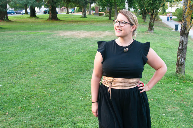 Cette combinaison noire est très belle. Accessoirisée comme ça, elle est vraiment classe. Et c'est vrai que de loin on dirait plus on robe. Elle doit être bien confortable 🙂