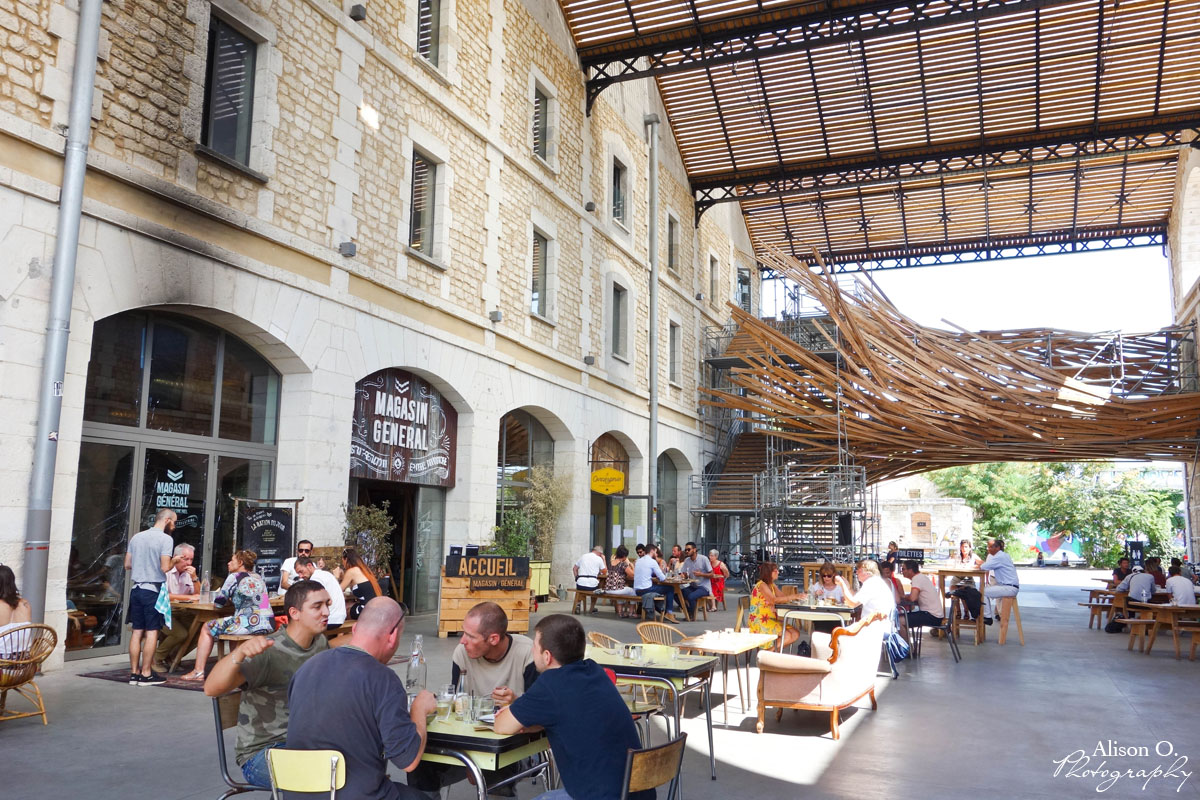 La première, c’est notre visite du fameux Darwin ou Caserne Niel qui accueille notamment le Magasin Général et des associations. Nous avons visiter les fameux hangar désaffectés, tagués, ou réaménagés. C’est un lieu que j’ai particulièrement apprécié malgré la chaleur du jour (plus de 35°C). J’aime les lieux comme ceux-là qui me rappellent aussi mes sorties urbex… Cela fait trop longtemps que je n’en ai pas fait… Bref. Nous avons déjeuné au Magasin Général. C’est vraiment un lieu sympa, intéressant et plein de vie. Et franchement, ultra instagramable ^^