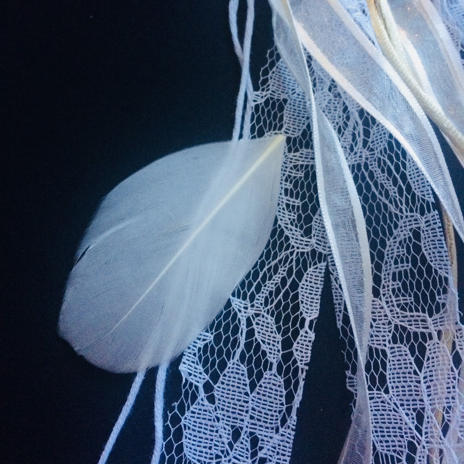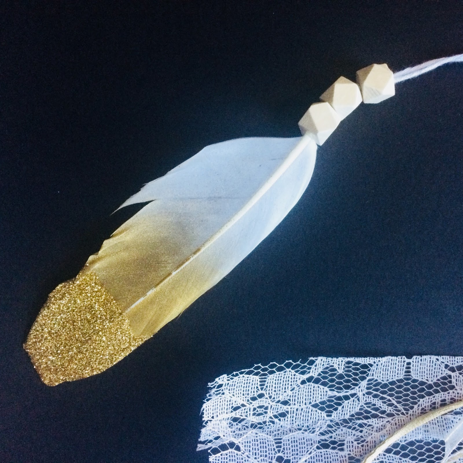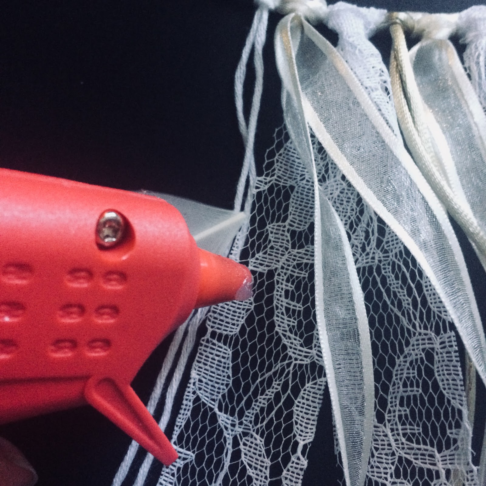 9- Vous pouvez également ajouter de petites plumes blanches sur vos rubans en les collant avec un pistolet à colle.